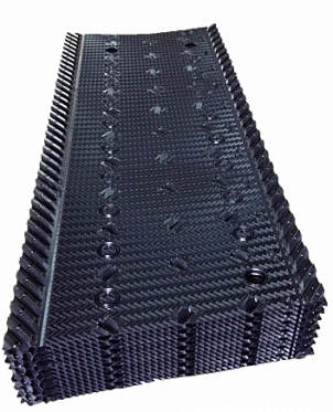 懸掛式高效橫流塔專用填料,該填料采用改性阻燃PVC經(jīng)真空吸塑而成,其氧指數(shù)達(dá)到33,達(dá)到國際B1級難燃標(biāo)準(zhǔn),在65℃水溫中不變形,可在50℃下長期穩(wěn)定的工作。波高20mm,該填料獨(dú)有的自帶高效收水器和導(dǎo)風(fēng)裝置設(shè)計,保證熱交換率,并將漂水損失控制到小于循環(huán)水量的0.001%。解決了傳統(tǒng)填料采用膠水粘接導(dǎo)致變脆、易堵塞、難清洗、漂水率高等缺點(diǎn),從而大大提高了填料的使用壽命。